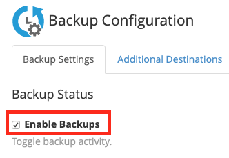 گزینه های Backup Configuration در قسمت اصلی پنجره WHM ظاهر می شوند. سپس در صورت عدم تیک زدن، تیک Enable Backups را علامت بزنید. به این ترتیب، زمانی که این تنظیمات را ذخیره کردید، دفعه بعد که فرآیند پشتیبان گیری اجرا شد، از اطلاعات به روشی که شما مشخص کرده اید نسخه پشتیبان تهیه می شود.
